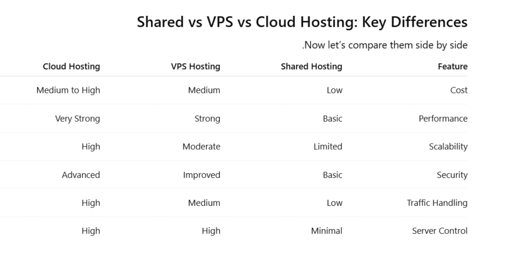 Choosing the right web hosting plan is one of the most important decisions for any website owner. Whether you’re starting a blog, launching an eCommerce store, or building a business website, understanding the difference between Shared Hosting vs VPS Hosting vs Cloud Hosting can save you time, money, and serious performance issues.